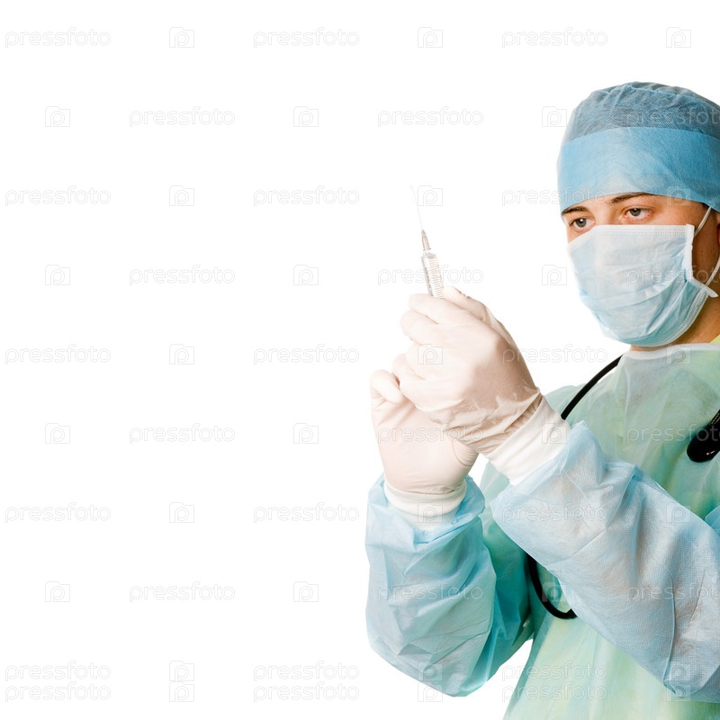 Доктор с шприцем, белый фон