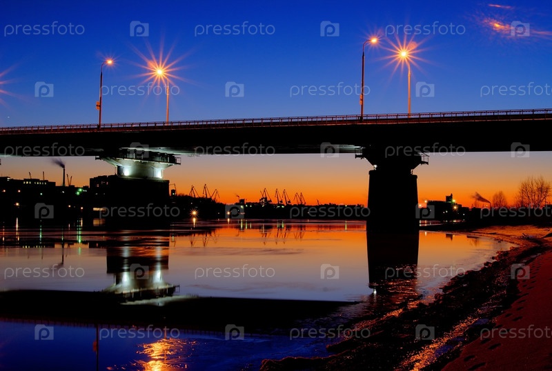 Ночное освещение автомобильного моста