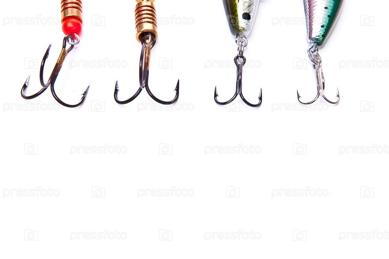 Рыболовные крючки на белом фоне