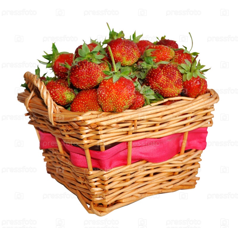 Клубника в корзине, изолировано на белом фоне