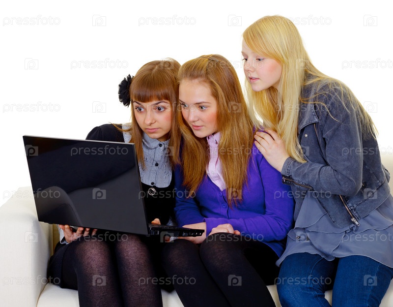 Девочки-подростки с ноутбуком