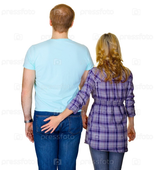 Молодая пара - вид сзади на белом фоне