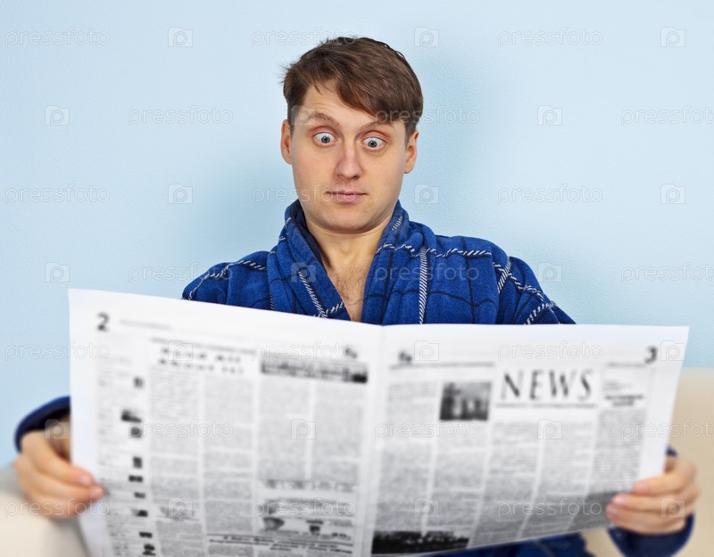 Мужчина с восхищением читает газету
