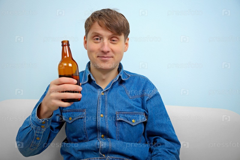 Человек расслабляется с бутылкой пива