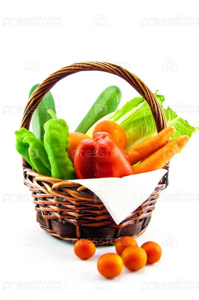 Корзинка с овощами на белом фоне
