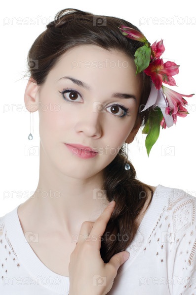 Портрет девушки с цветами в волосах