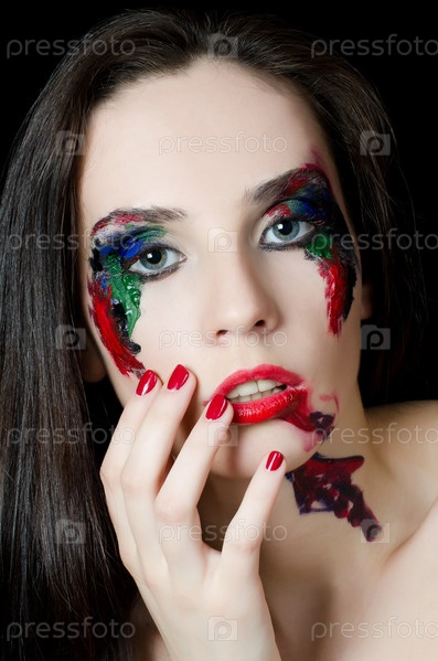 Красивая женщина с краской на лице