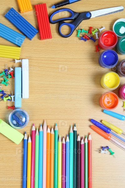 Школьные принадлежности на деревянном столе