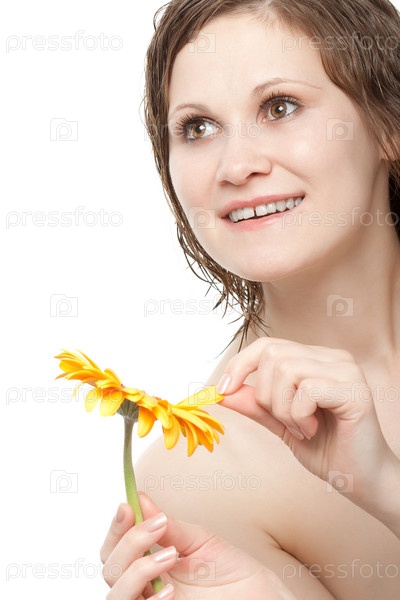 Женщина гадает на ромашке