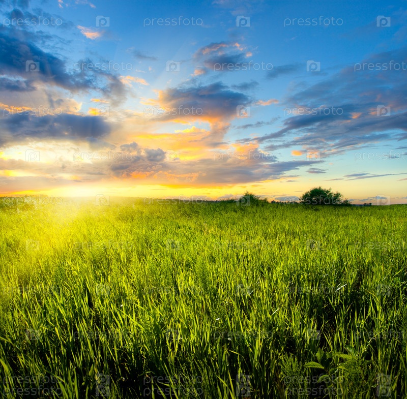 Закат на зеленом поле