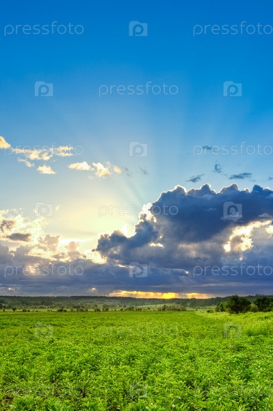 Солнце за облаками над полем