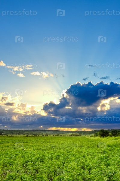 Солнце за облаками над полем