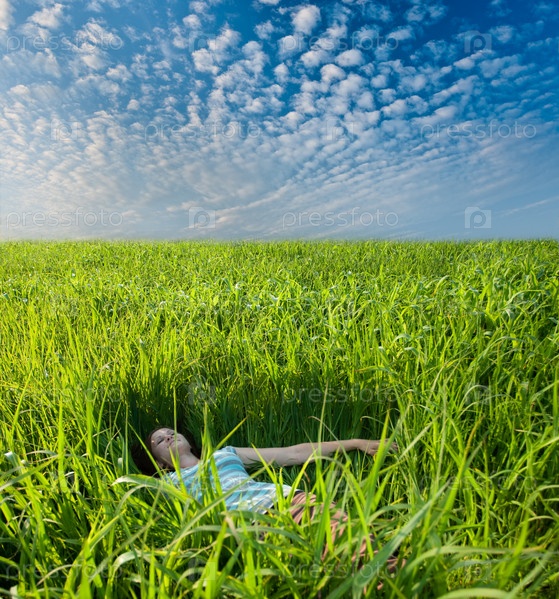 Женщина в зеленой траве