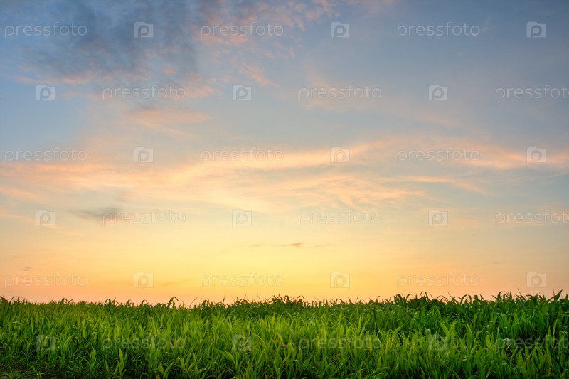 Красивый закат над полем