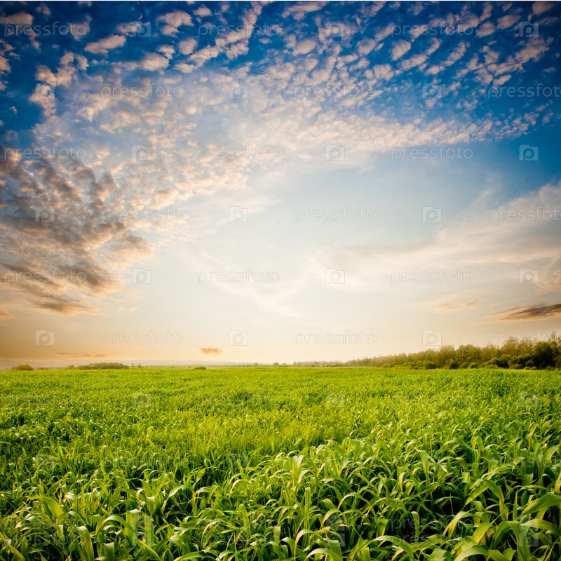 Красивый закат над полем