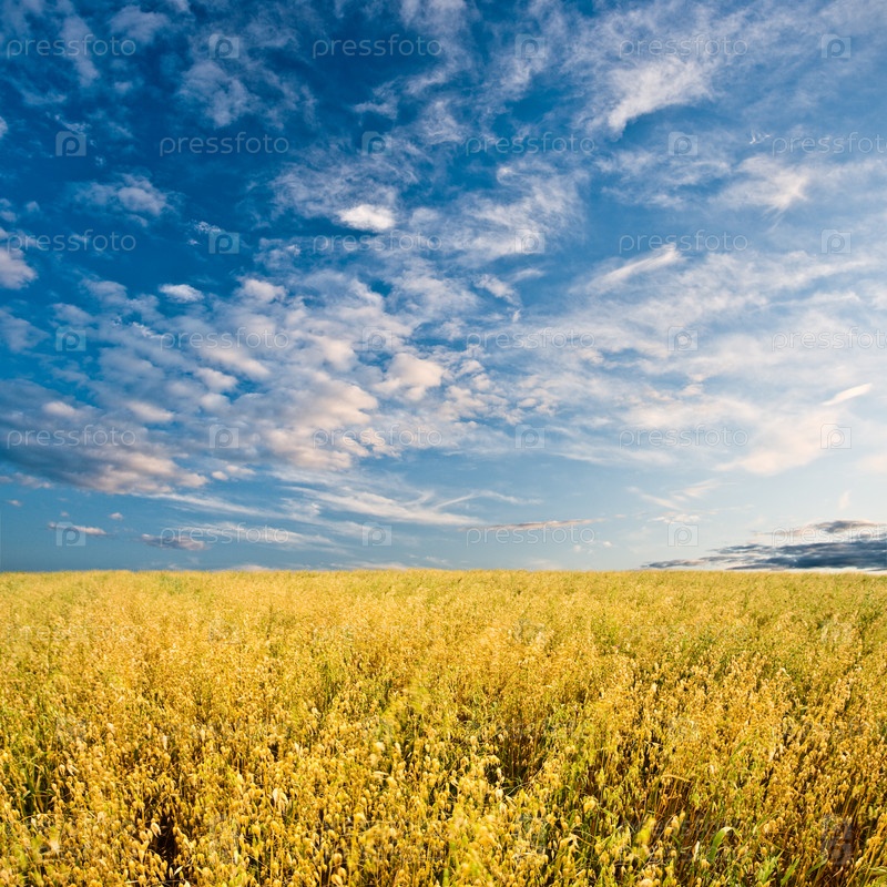 Золотой овес на поле под синим небом