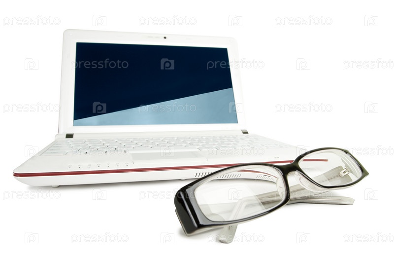 Изолированные белый ноутбук и очки
