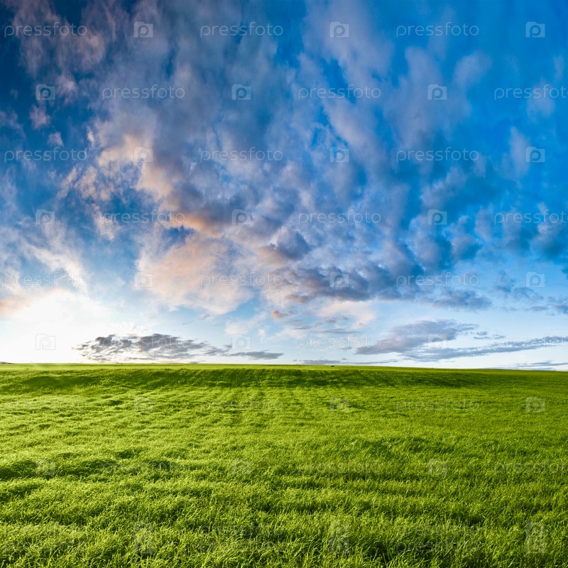 Красивый закат на зеленом поле
