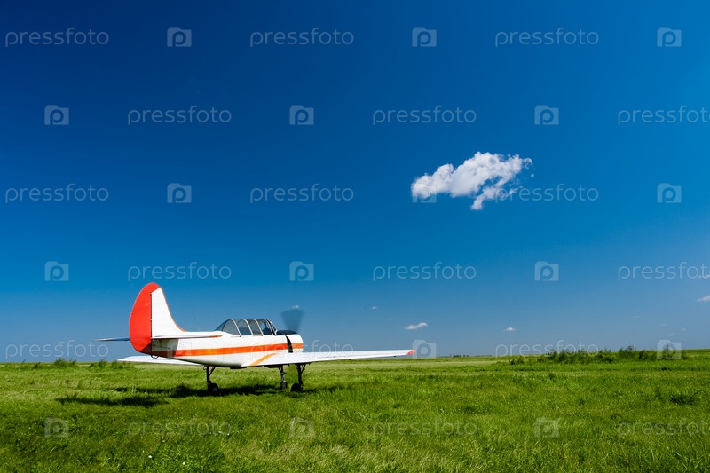 Самолет в зеленом поле