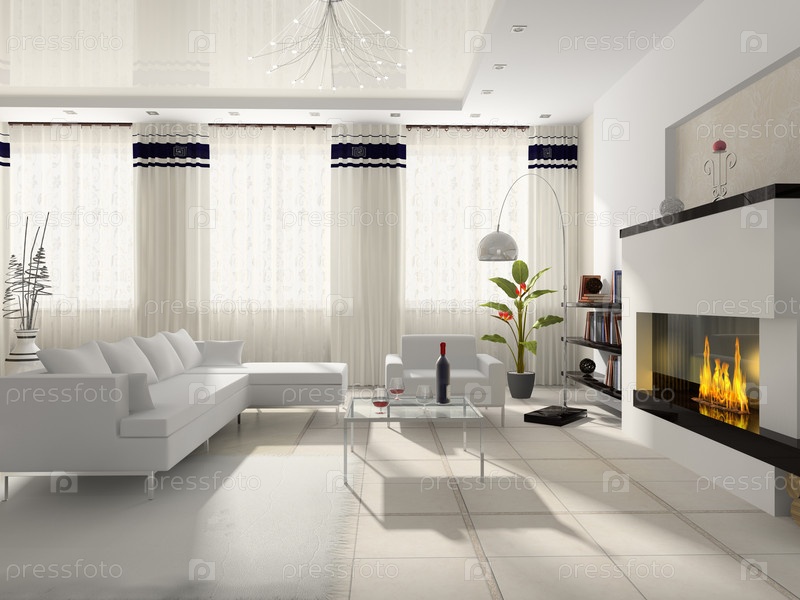 Интерьер с камином и мебелью