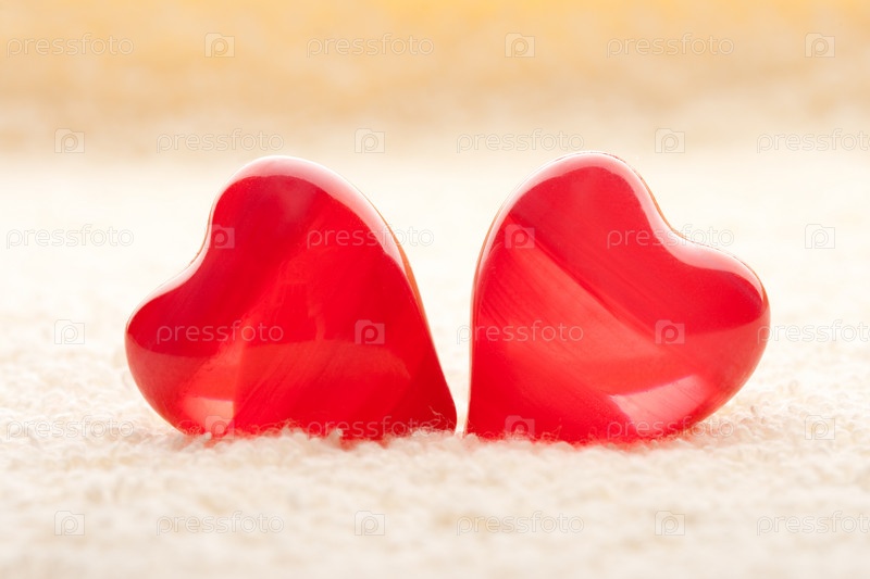 Красные сердца на желтом полотенце