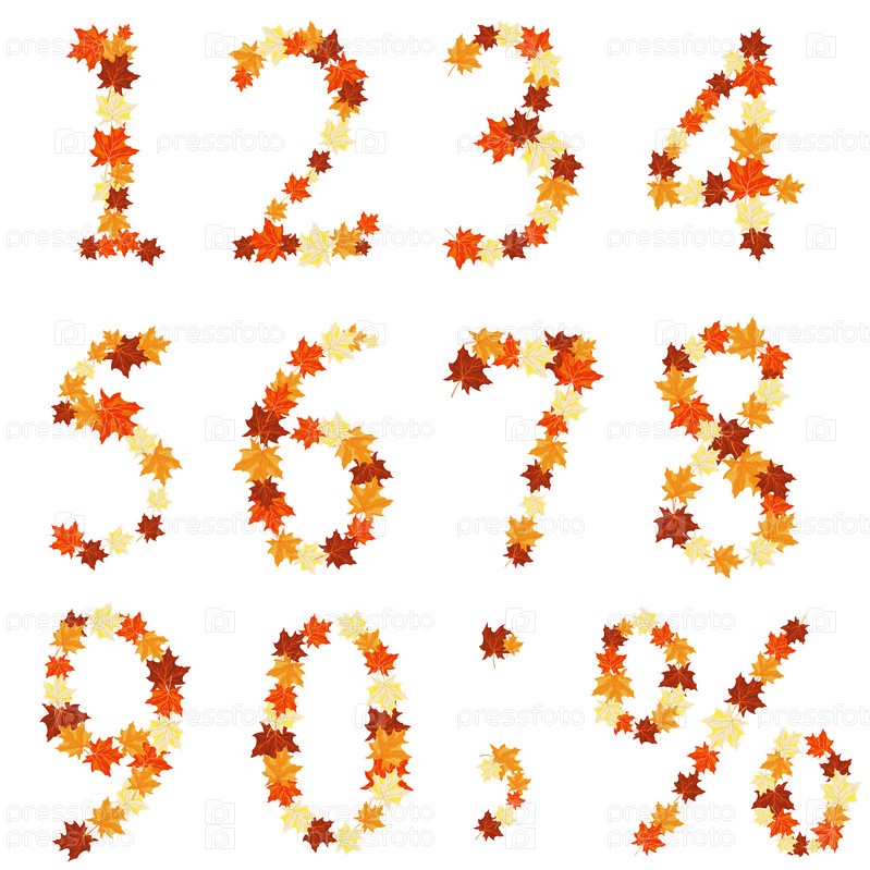 Набор чисел из осенних кленовых листьев
