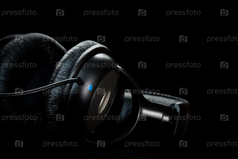 Черные наушники на черном фоне