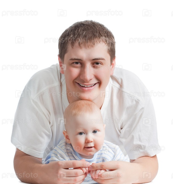 Отец и сын на белом фоне