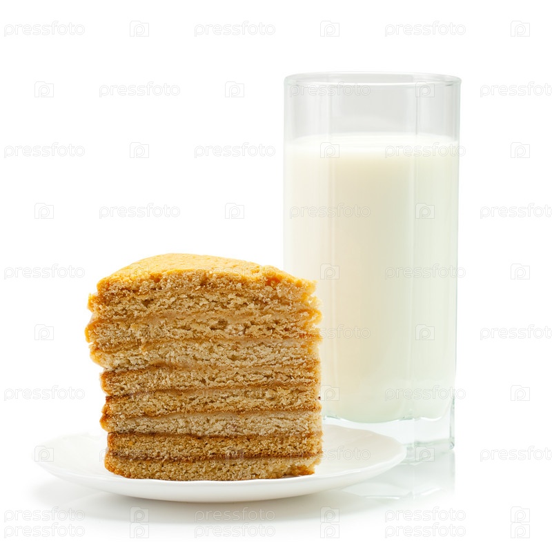 Молоко и торт на белом фоне