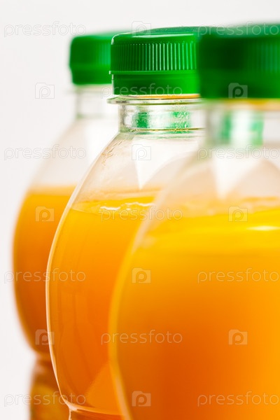 Три бутылки с апельсиновым соком