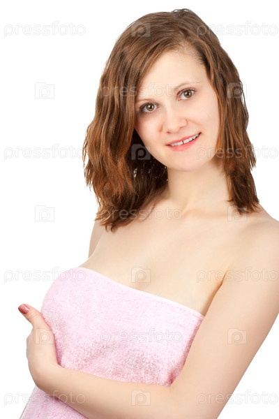 Портрет молодой женщины в розовом полотенце