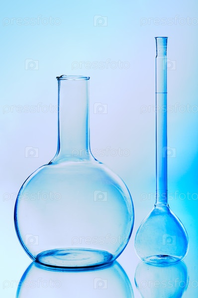 Стеклянные колбы на синем фоне