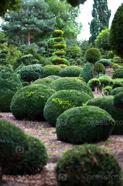Ландшафтный дизайн. Топиари. Кусты и деревья в замечательно оформленном парке