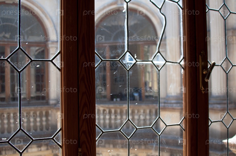 Вид из офиса через окно в старом здании