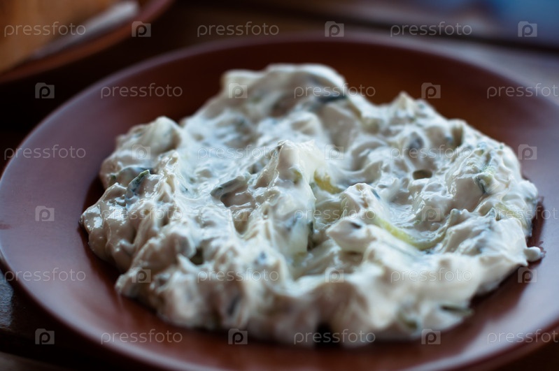 Дзадзики - греческий соус из йогурта, свежего огурца, чеснока, оливкового масла и укропа