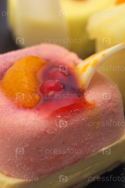 Прирожное со свежими ягодами крупным планом