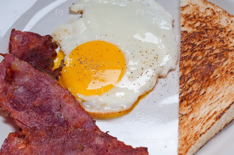 Яйца с беконом и тост, типичный английский завтрак