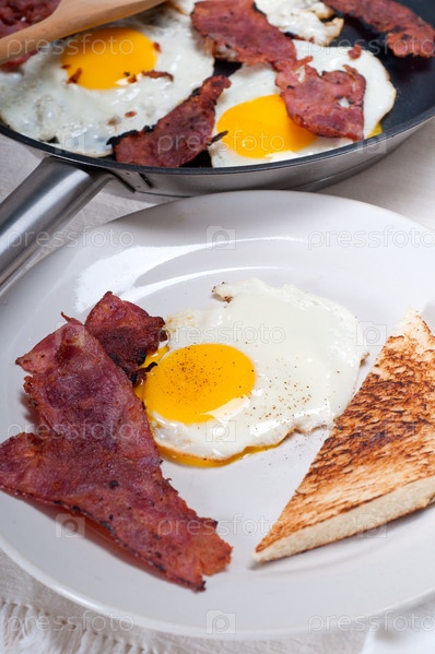 Яйца с беконом и тост, типичный английский завтрак