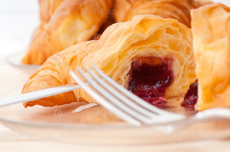 Французский свежий круассан с ягодным вареньем
