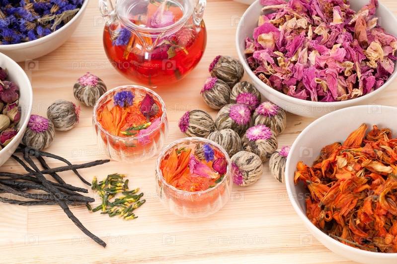 Натуральный цветочный чай с сухими ингредиентами