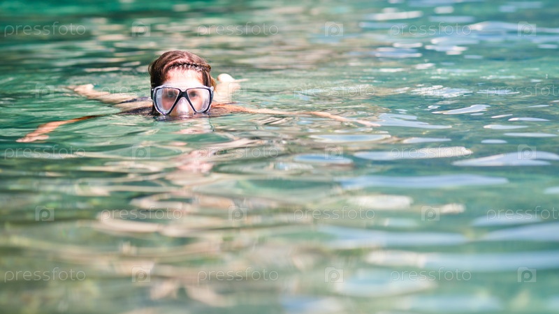 Женщина в маске купается в море