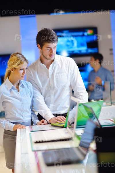 Молодая пара в магазине электроники