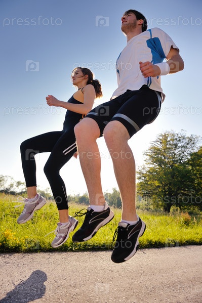 Молодая пара на утренней пробежке