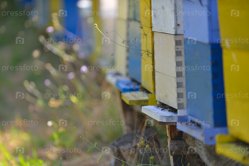 Пчелиная пасека с ульями