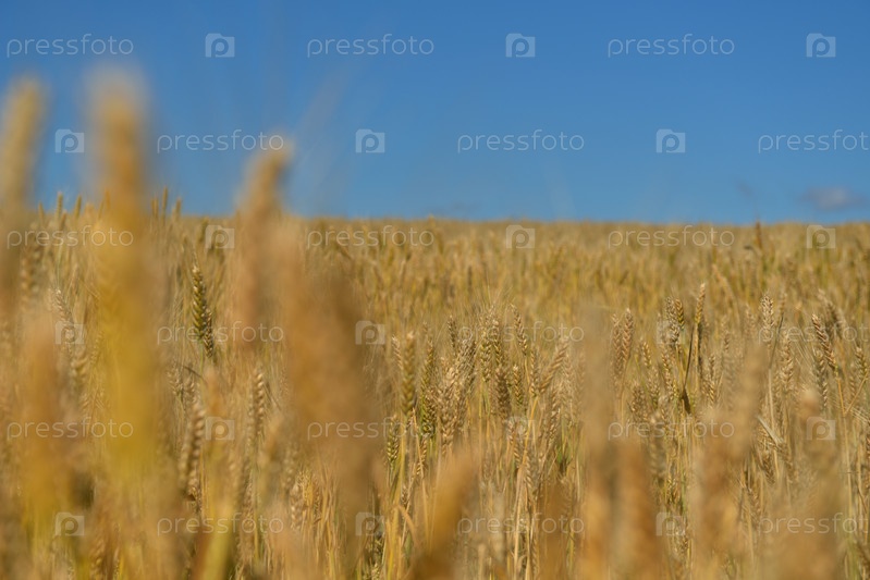Поле золотой пшеницы на фоне голубого неба
