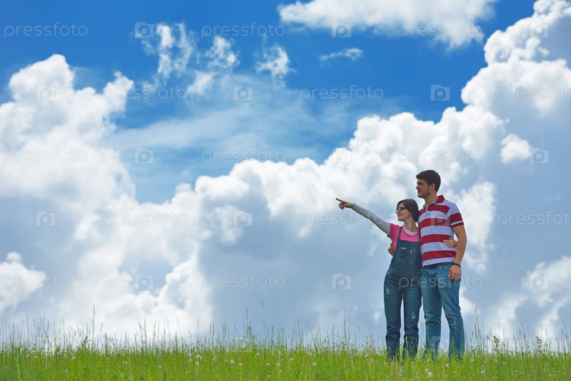 Счастливая молодая влюбленная пара на свежем воздухе