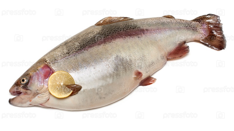 Свежая форель с лимоном на белом фоне