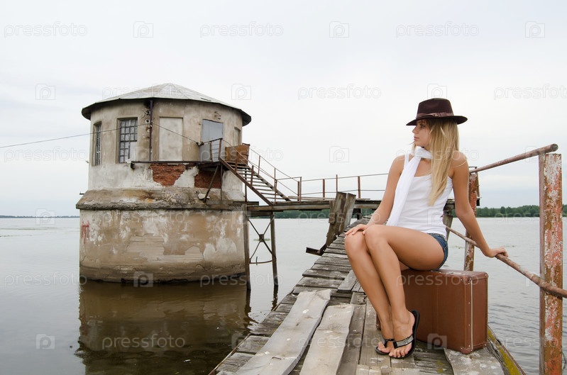 Женщина с чемоданом на пирсе