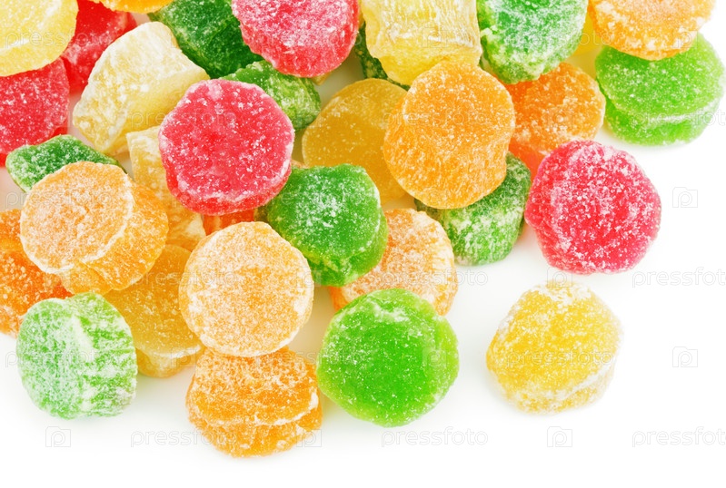 Сладкие засахаренные фрукты на белом фоне