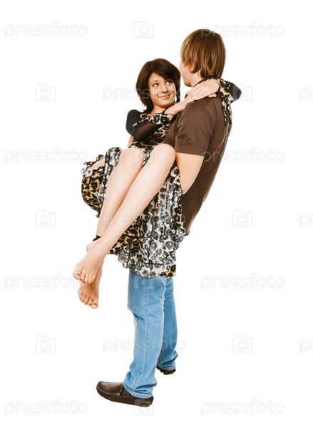Молодая красивая пара на белом фоне